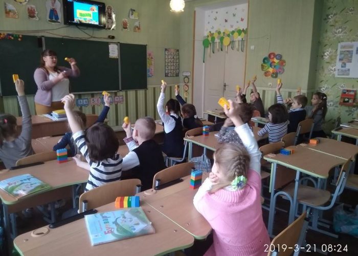 #HealthySchools_UA здорового харчування в НУШ. Тема дня «Як поводиться за столом під час споживання їжі?». 21березня в 1-Б класі розпочався з ранкової зустрічі із використанням цеглинок Lego. Учні розгадували загадки про овочі та фрукти, створювали піраміду. Із піраміди кожен обирав колір цеглинки, яка відповідає кольору улюбленого фрукта. Ставши у коло, малювали цей фрукт один одному цеглинками на спині, щоб відгадав товариш. На уроці «Я досліджую світ» учні знайомились із поняттям етикет та правилами поводження за столом. Паламарчук А.О. разом з першокласниками зробили інсценівку «Столові прибори», опрацювали вірш «Пам’ятайте любі, діти», складали меню, за допомогою органів чуття відгадували овочі та фрукти, а також у команді сервірували стіл за зразком. На уроці трудового навчання учні виготовили фрукти з пластиліну на папері.